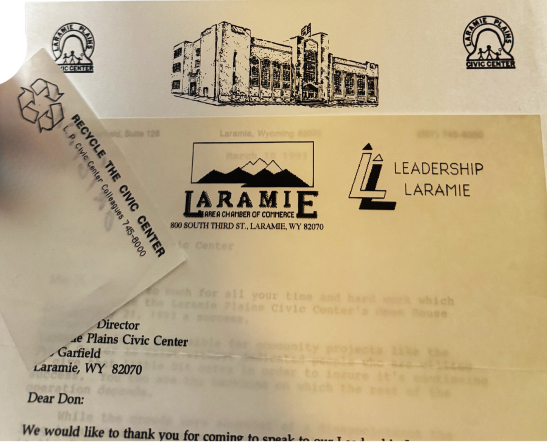 Former Director Eisenhauer’s personal stationary donned in doodles while letterhead and memo pads from the Civic Center and Laramie Chamber contained important correspondence from the nonprofit’s first years.